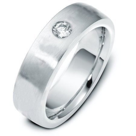 Platinum, 6.0 mm wide, comfort fit wedding band. The diamond weighs 0.17 ct and graded as VS in clarity G in color. The finish on the ring is matte. Other finishes may be selected or specified.