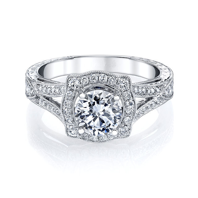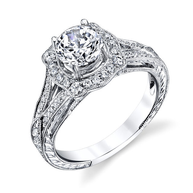 Item #E33044WE - Vintage Halo Diamond Engagement Ring