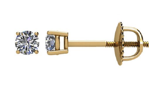 14K gold, 1/3 ct total weight friction back diamond stud earrings. Diamonds are graded as I1 in clarity I-J in color.
