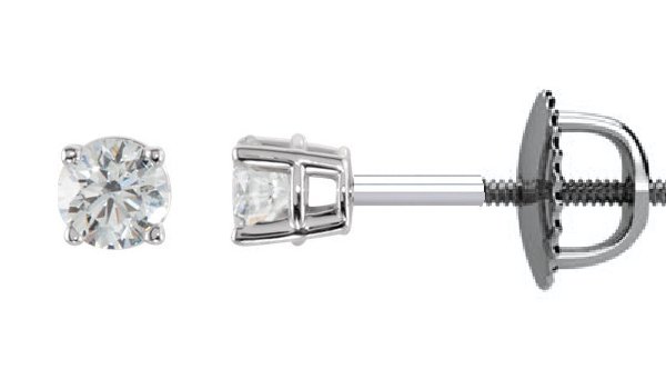 Platinum, 1/3 ct total weight screw post, diamond stud earrings. Diamonds are graded as VS in clarity G-H in color.