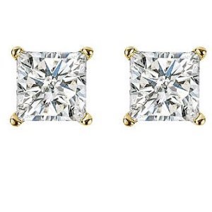 14K gold, 1/3 ct total weight screw post, princess cut, diamond stud earrings. Diamonds are graded as SI in clarity I-J in color.