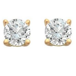 14K gold, 0.40 ct total weight, friction back diamond stud earrings. Diamonds are graded as I1 in clarity I-J in color.