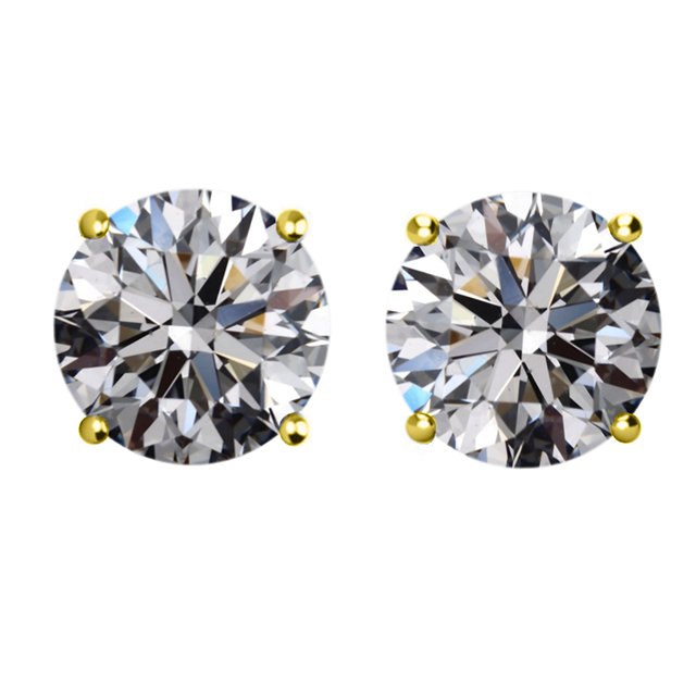 18K gold, 3.0ct total weight, friction back diamond stud earrings. Diamonds are graded as SI in clarity I-J in color.