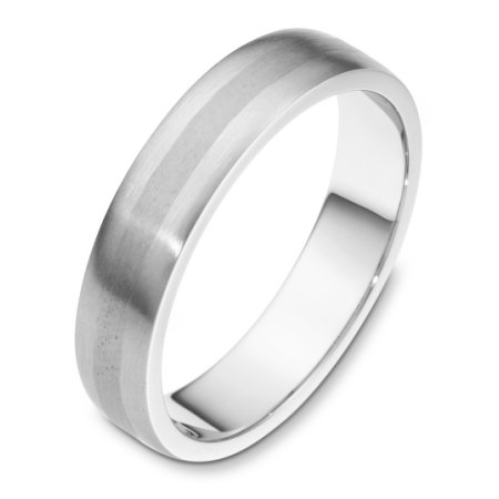 14 kt white gold, hand made comfort fit, Wedding Band 5.0 mm wide. The finish on the ring is matte. Other finishes may be selected or specified.