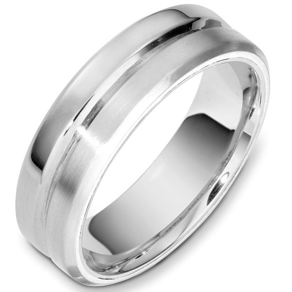 Palladium contemporary, comfort fit, 7.0mm wide wedding band. The titanium portion is a matte finish and the white gold is polished. Different finishes may be selected or specified.