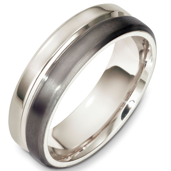 Titanium and 18kt white gold contemporary, comfort fit, 7.0mm wide wedding band. The titanium portion is a matte finish and the white gold is polished. Different finishes may be selected or specified.