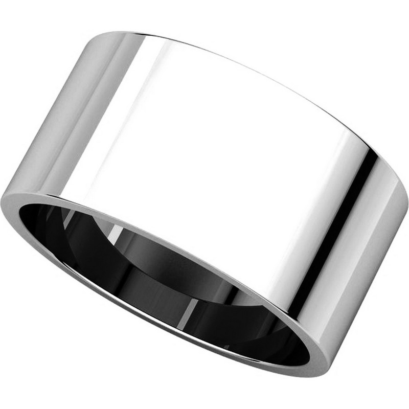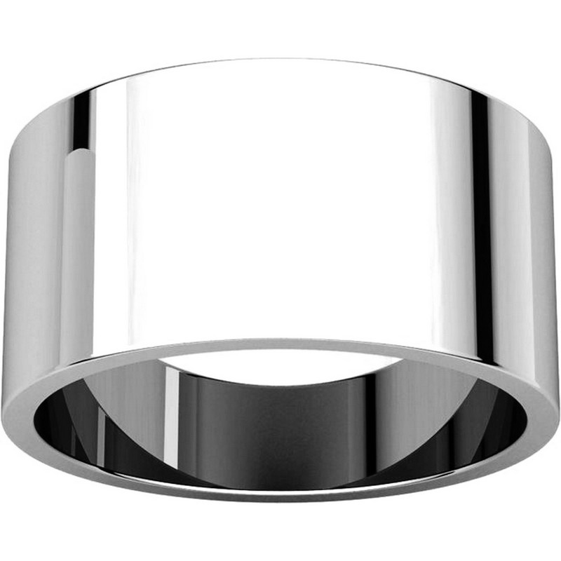 Platinum, 10.0 mm wide, flat, plain wedding band. The finish on the ring is polished. Other finishes may be selected or specified.