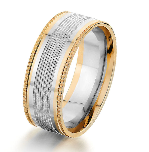 Two-Tone Gold Designed 8.0 MM Wedding Ring