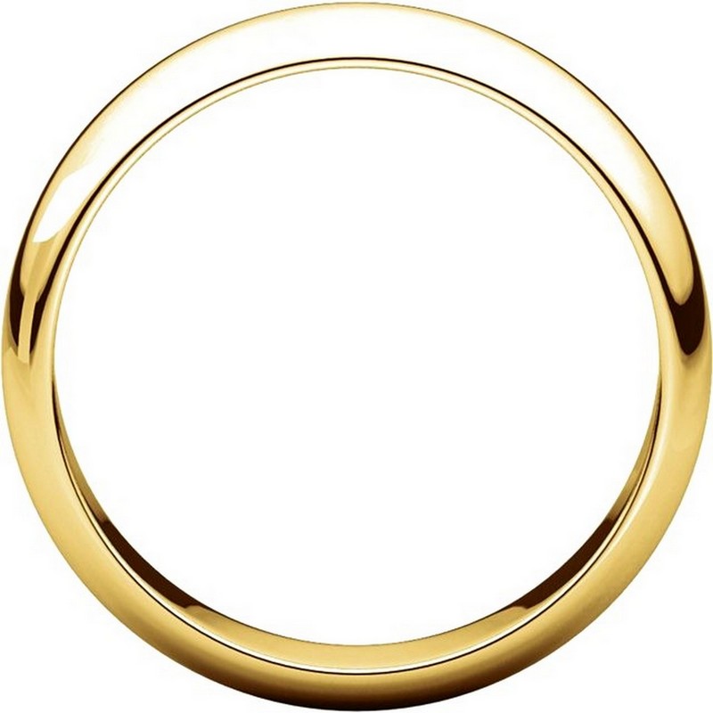 14 kt, yellow gold, high dome, 5.0 mm wide, plain wedding band. The finish on the ring is polished. Other finishes may be selected or specified.