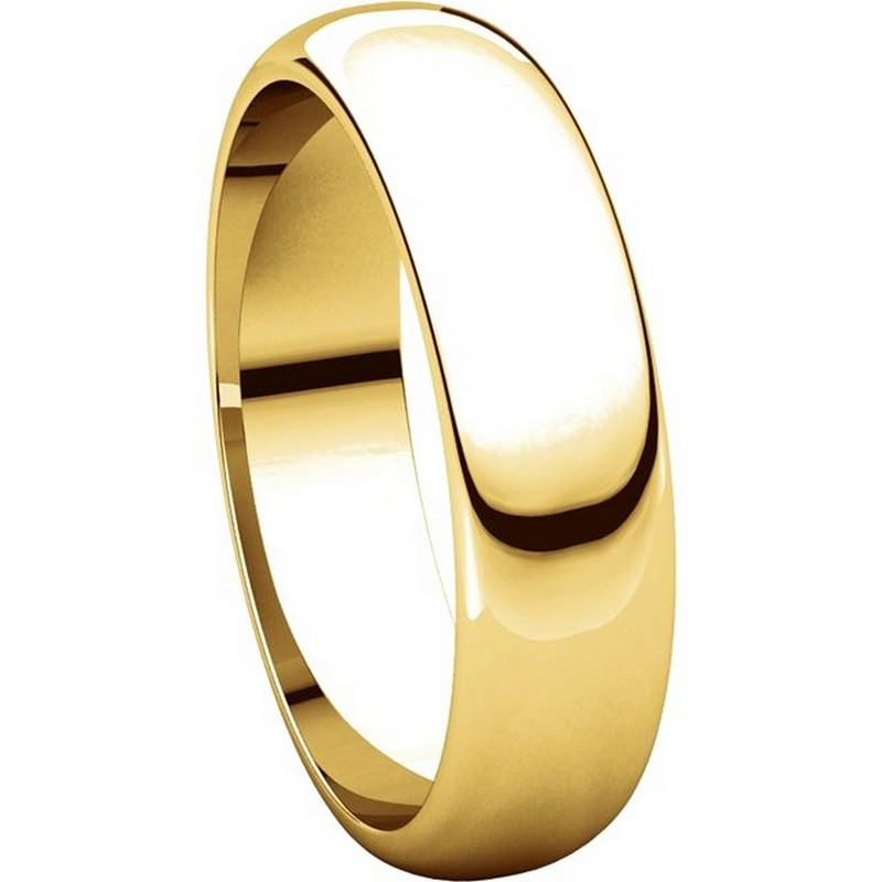 18 kt, yellow gold, high dome, 5.0 mm wide, plain wedding band. The finish on the ring is polished. Other finishes may be selected or specified.