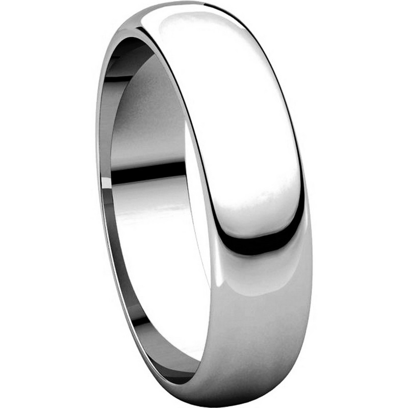 Palladium, high dome, 5.0 mm wide, plain wedding band. The finish on the ring is polished. Other finishes may be selected or specified.