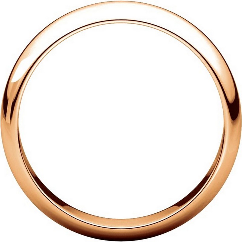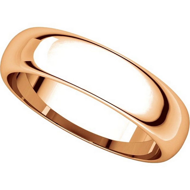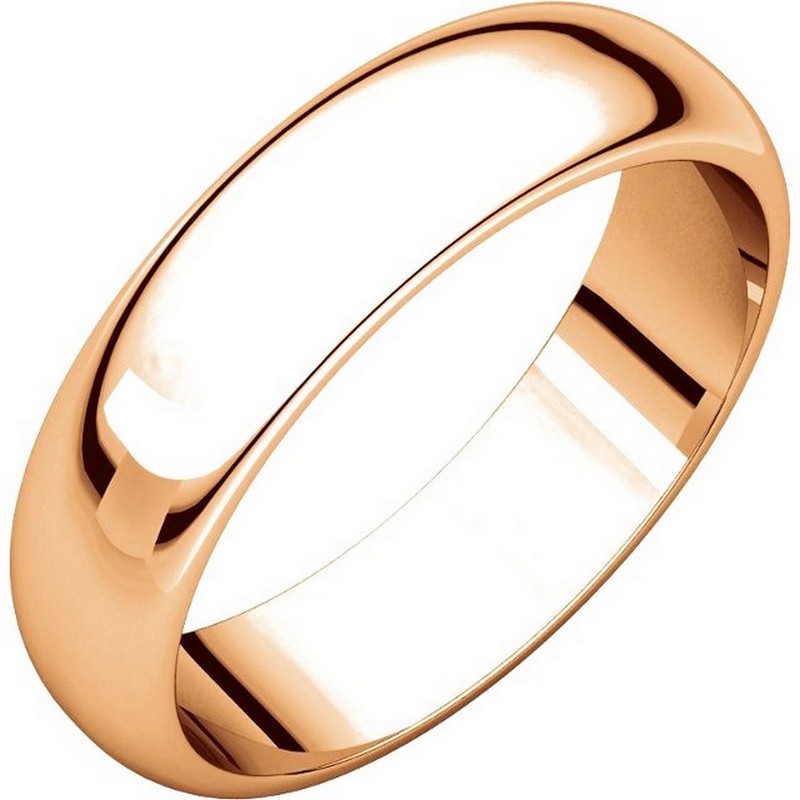 18 kt Rose, gold, high dome, 5.0 mm wide, plain wedding band. The finish on the ring is polished. Other finishes may be selected or specified.