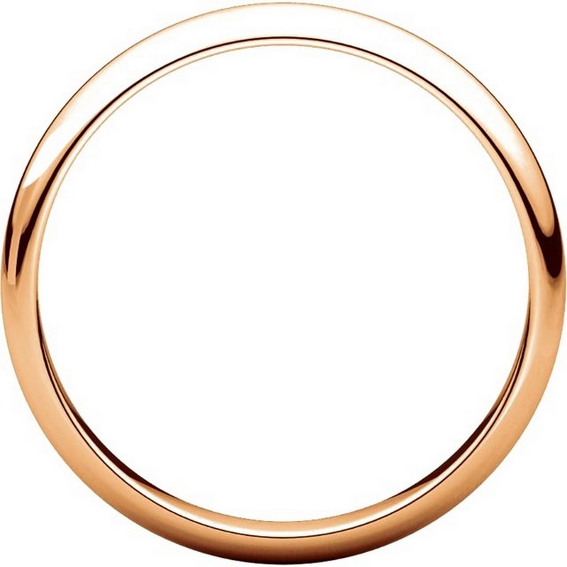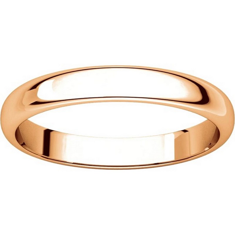 14 kt Rose, gold, high dome, 3.0 mm wide, plain wedding band. The finish on the ring is polished. Other finishes may be selected or specified.