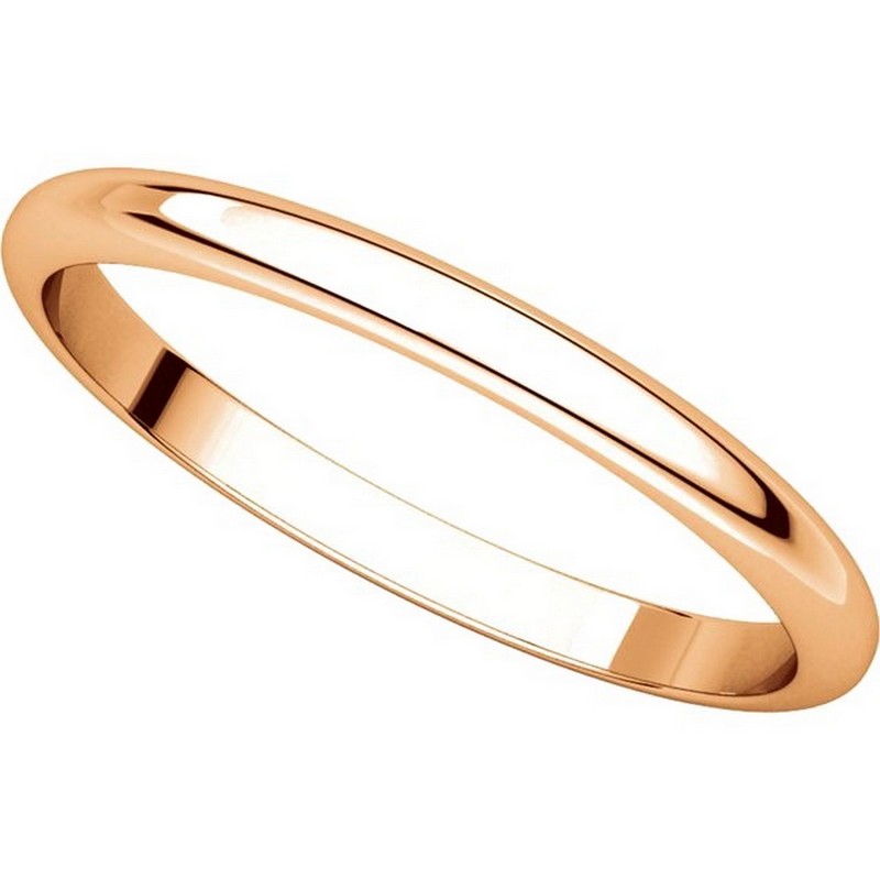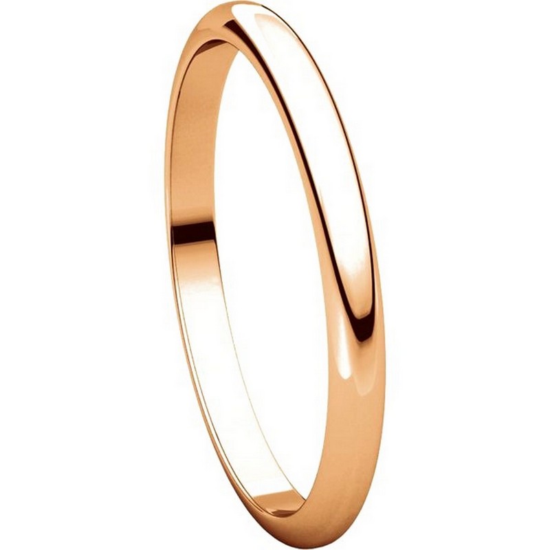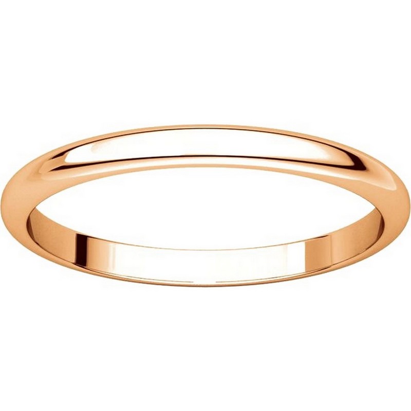 18 kt Rose, gold 2.0mm wide, high dome, plain wedding band. The finish on the ring is polished. Other finishes may be selected or specified.
