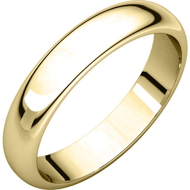18 kt, yellow gold, high dome, 4.0 mm wide, plain wedding band. The finish on the ring is polished. Other finishes may be selected or specified.