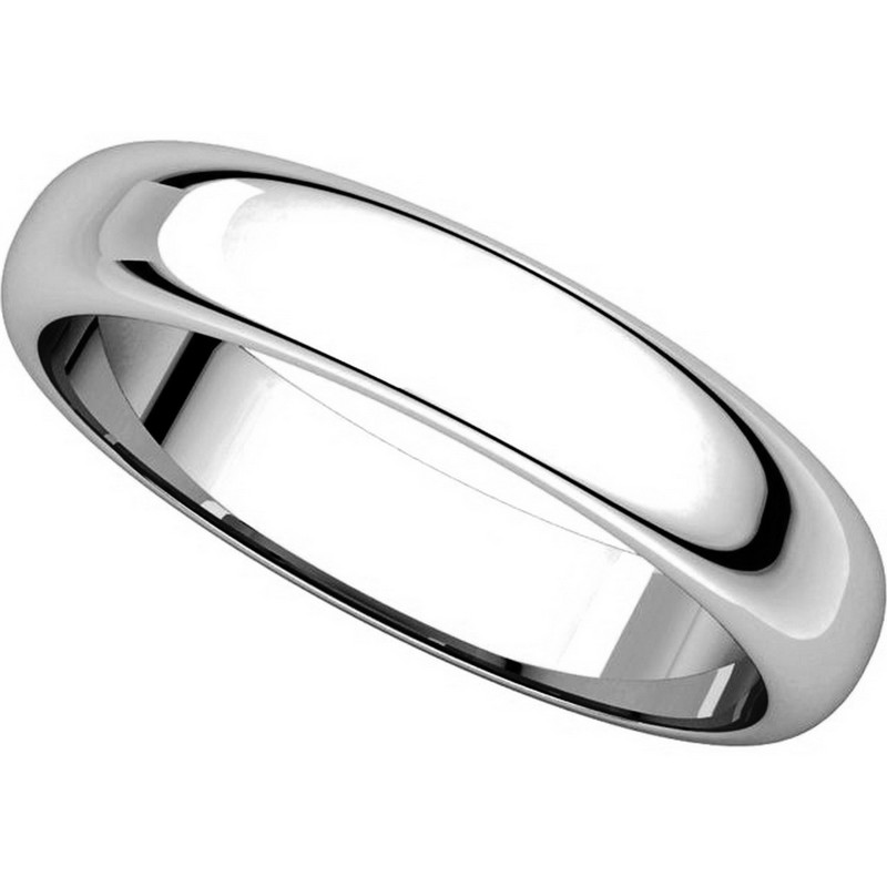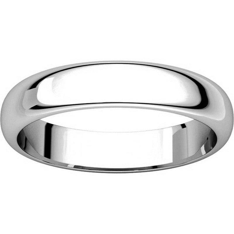 Palladium, high dome, 4.0 mm wide, plain wedding band. The finish on the ring is polished. Other finishes may be selected or specified.
