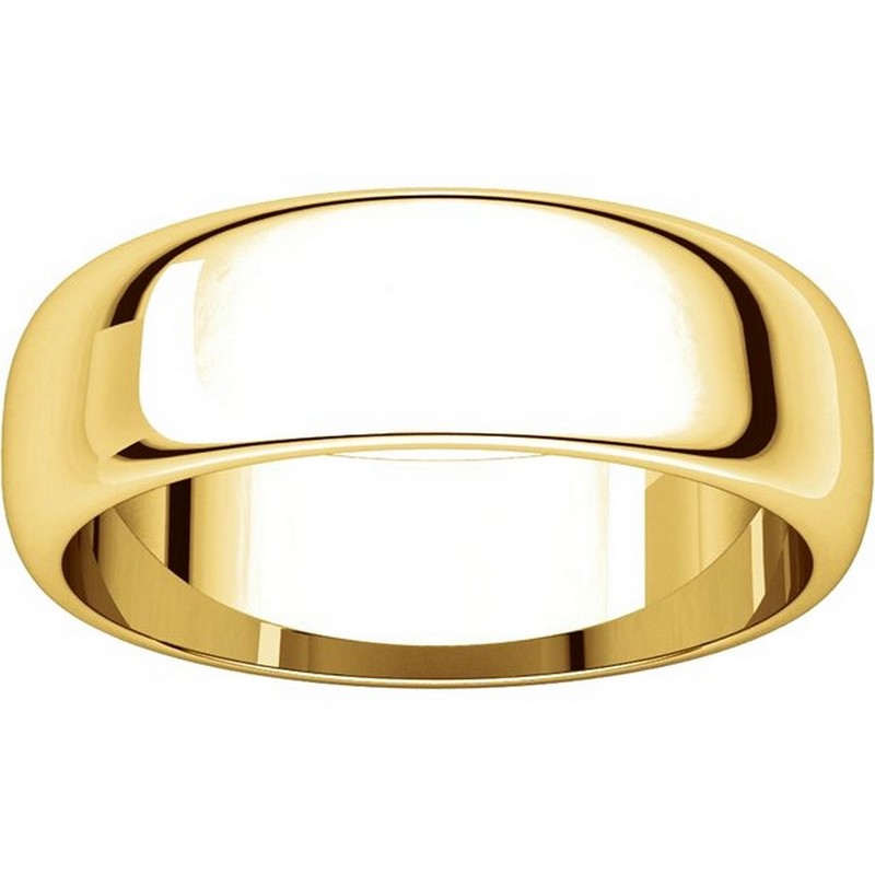 18 kt, yellow gold, high dome, 6.0 mm wide, plain wedding band. The finish on the ring is polished. Other finishes may be selected or specified.