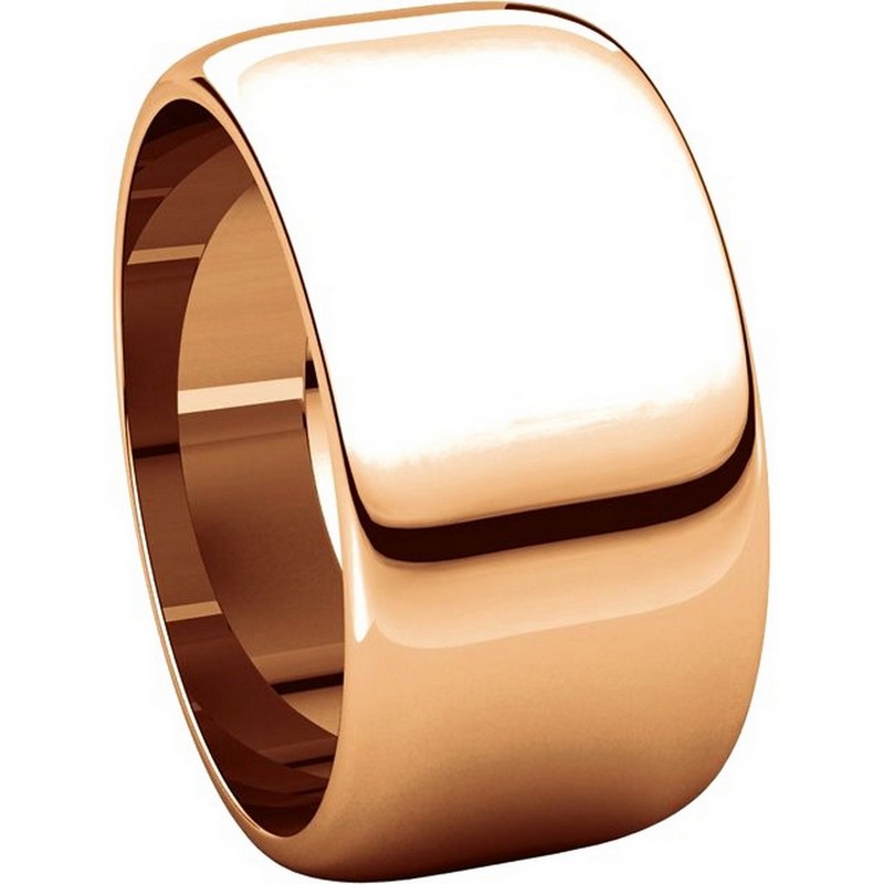 18K Roset gold, high dome, 10.0 mm wide, plain wedding band. The finish on the ring is polished. Other finishes may be selected or specified.