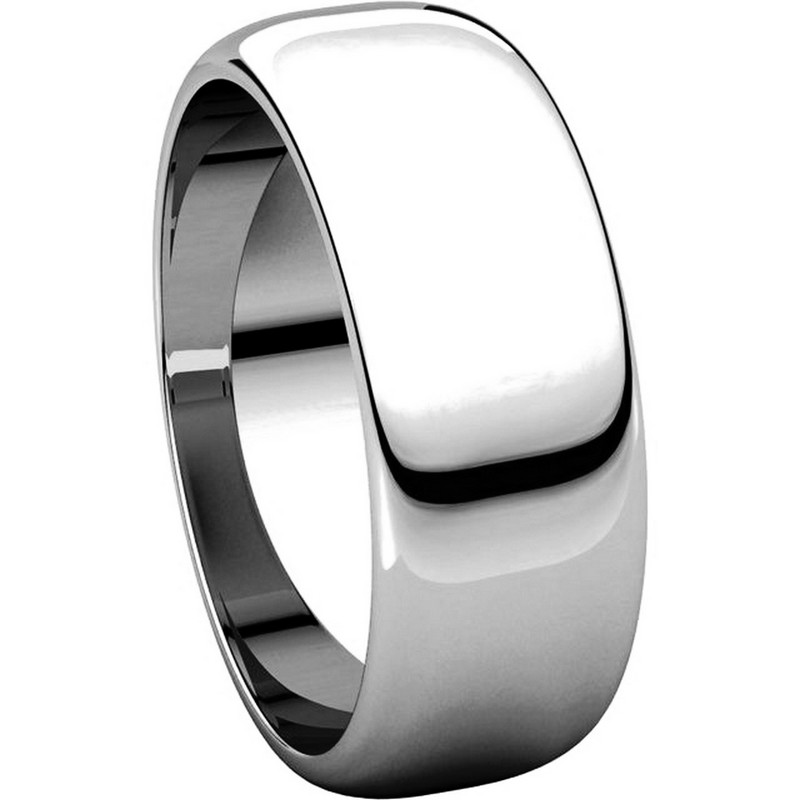 14K white gold, high dome, 7.0 mm wide, plain wedding band. The finish on the ring is polished. Other finishes may be selected or specified.