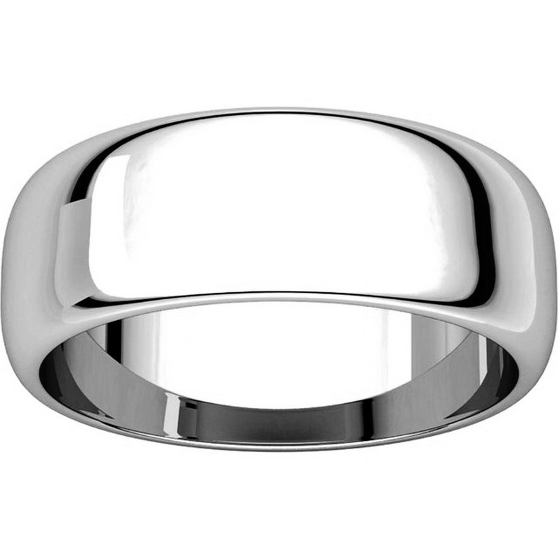 18K white gold, high dome, 7.0 mm wide, plain wedding band. The finish on the ring is polished. Other finishes may be selected or specified.