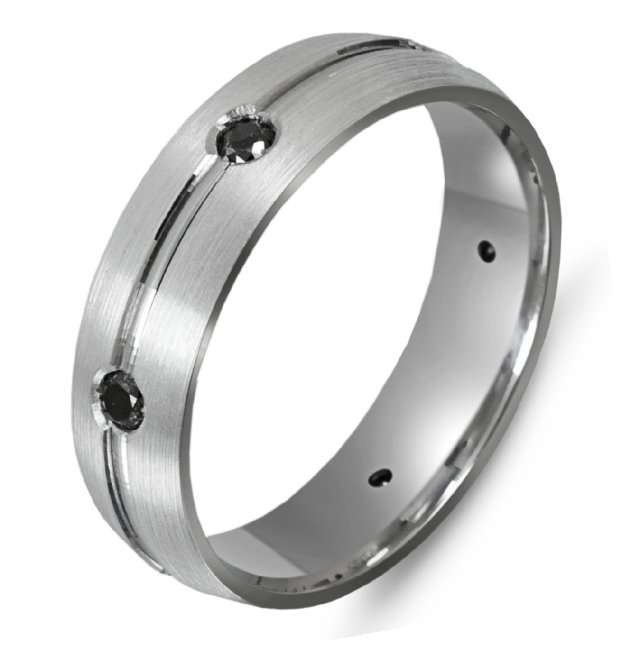 Silver, 6.0mm wide, comfort fit, black diamond wedding band. The wedding band holds 6 round black diamonds with 0.30ct total weight.