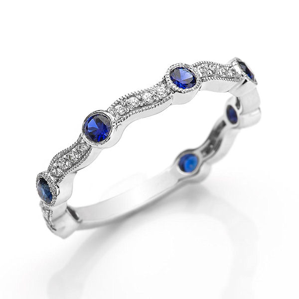 Item #M31902W - White Gold Diamond & Sapphire Stackable Ring