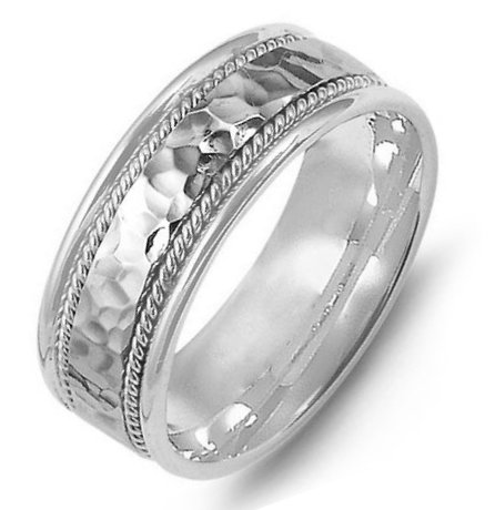 Palladium, comfort fit, 8.0mm wide, center hammered, hand made wedding band.
