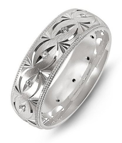 14K White Gold Carved Diamond Wedding Band