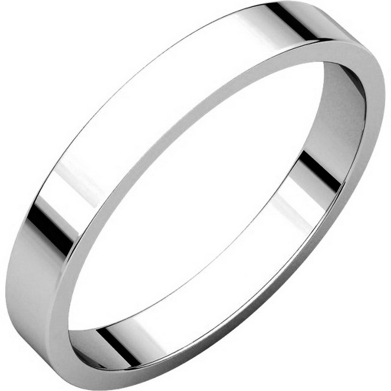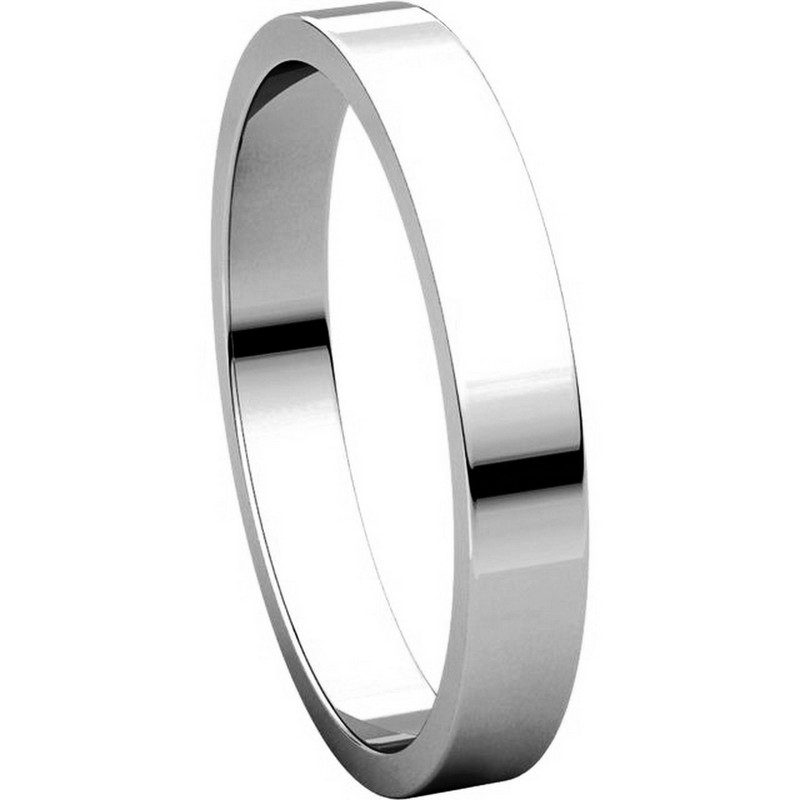 Palladium, plain, 3.0mm wide, flat wedding band. The wedding band is a polished finish. Different finishes may be selected or specified.