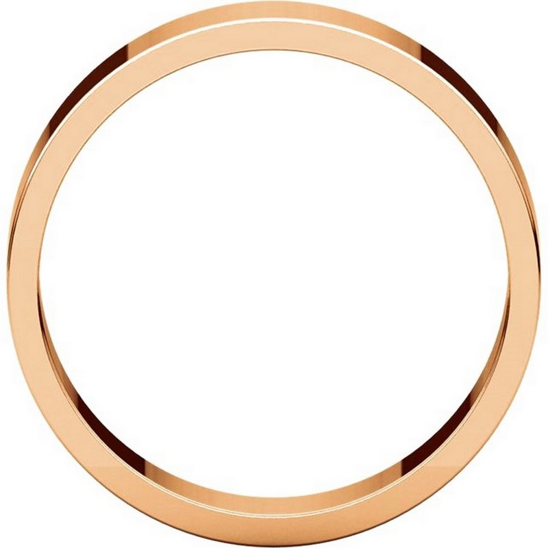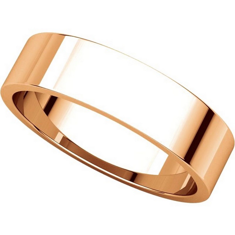 14 kt Rose gold, plain, 5.0mm wide, flat wedding band. The wedding band is a polished finish. Different finishes may be selected or specified.