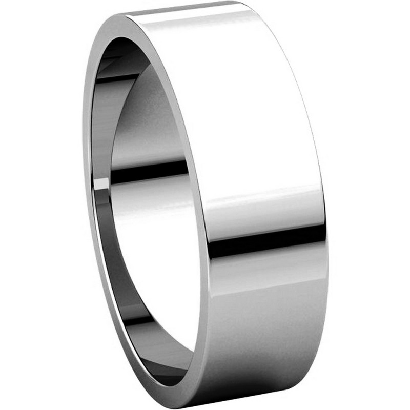 Platinum, plain, 6.0mm wide, flat wedding band. The wedding band is a polished finish. Different finishes may be selected or specified.