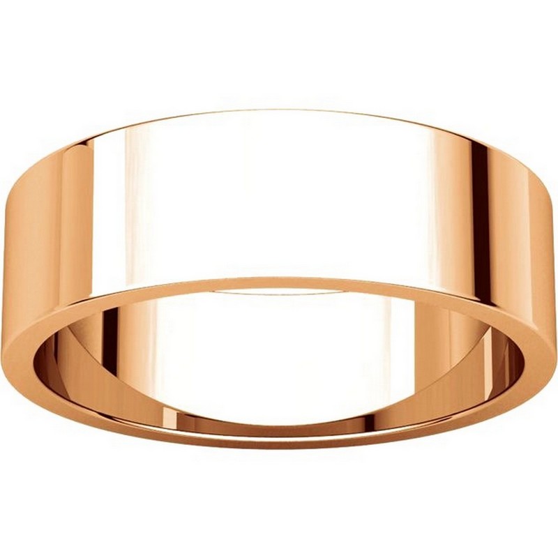 14K Roset gold, plain, 6.0mm wide, flat wedding band. The wedding band is a polished finish. Different finishes may be selected or specified.