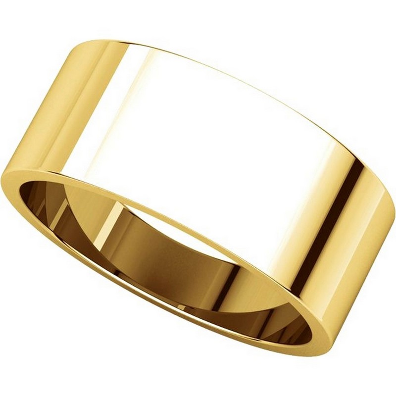 Yellow Gold 8mm Wide Flat Plain Wedding Band
