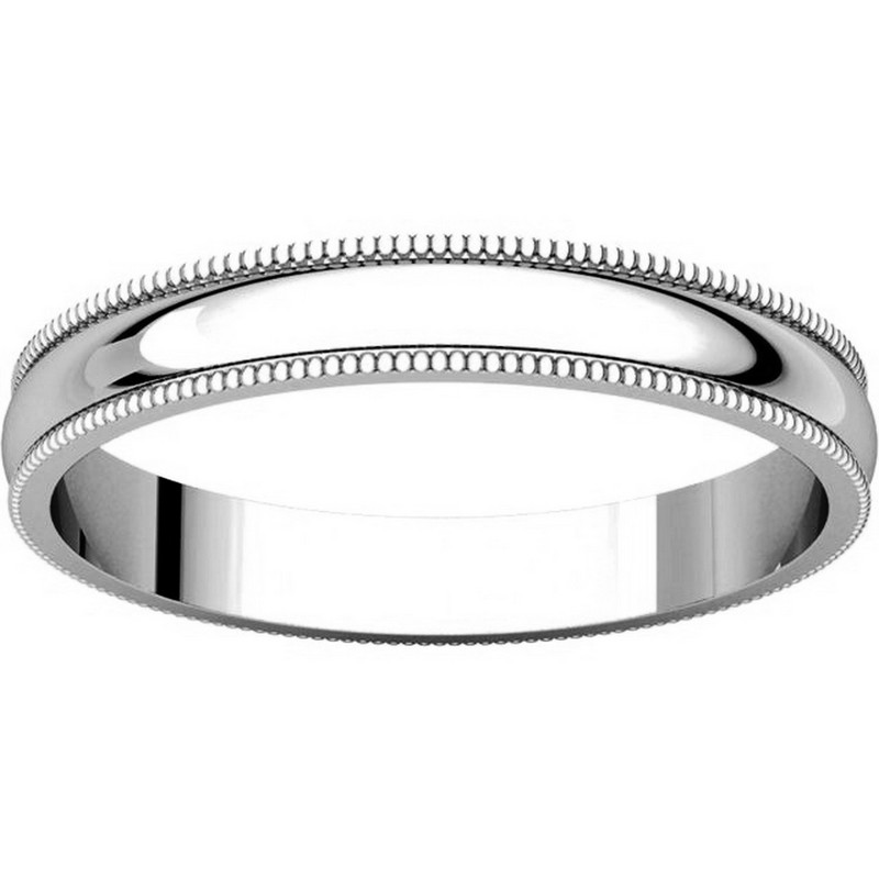 14K white gold 3.0 mm wide, milgrain edge wedding band. The finish on the ring is polished. Other finishes may be selected or specified.