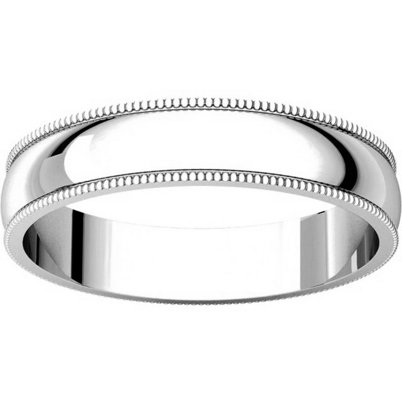 14 kt white gold 4.0 mm wide, milgrain edge wedding band. The finish on the ring is polished. Other finishes may be selected or specified.