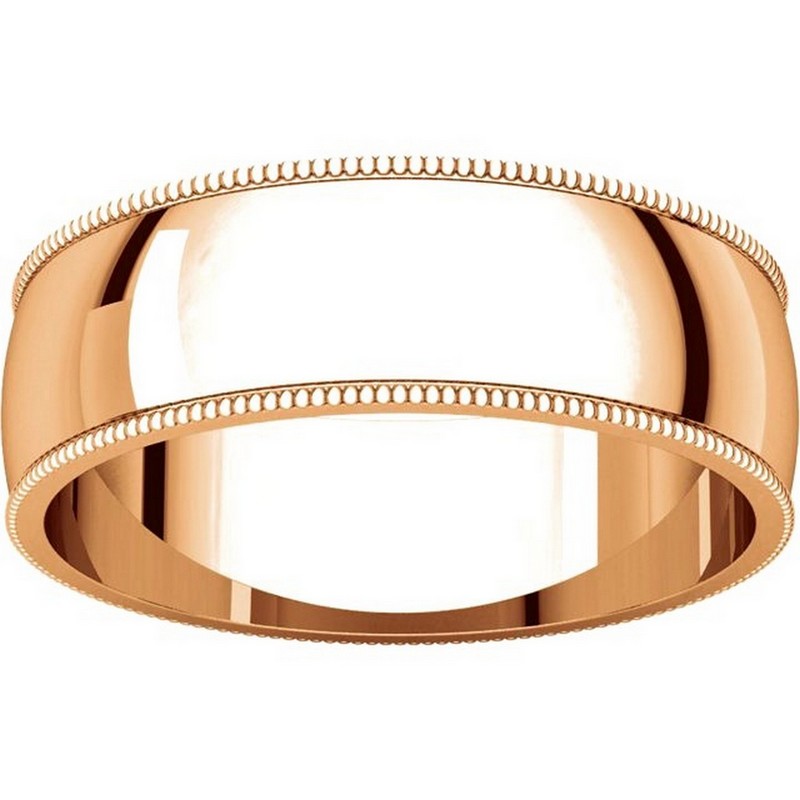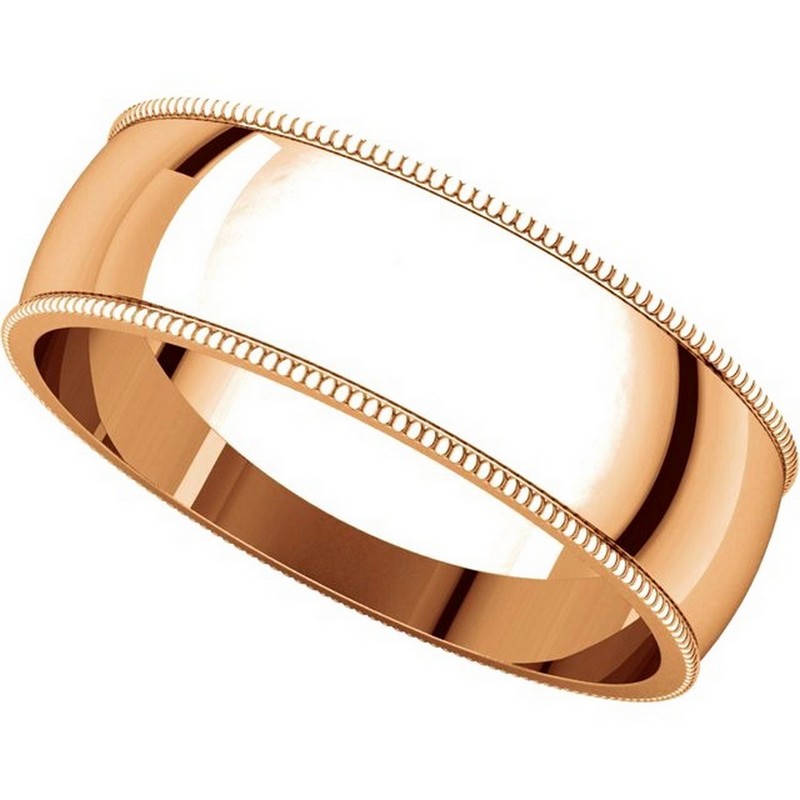 14K Roset gold, 6.0 mm wide, milgrain edge wedding band. The finish on the ring is polished. Other finishes may be selected or specified.