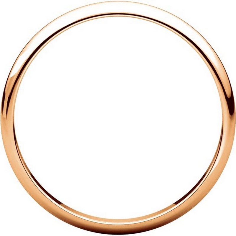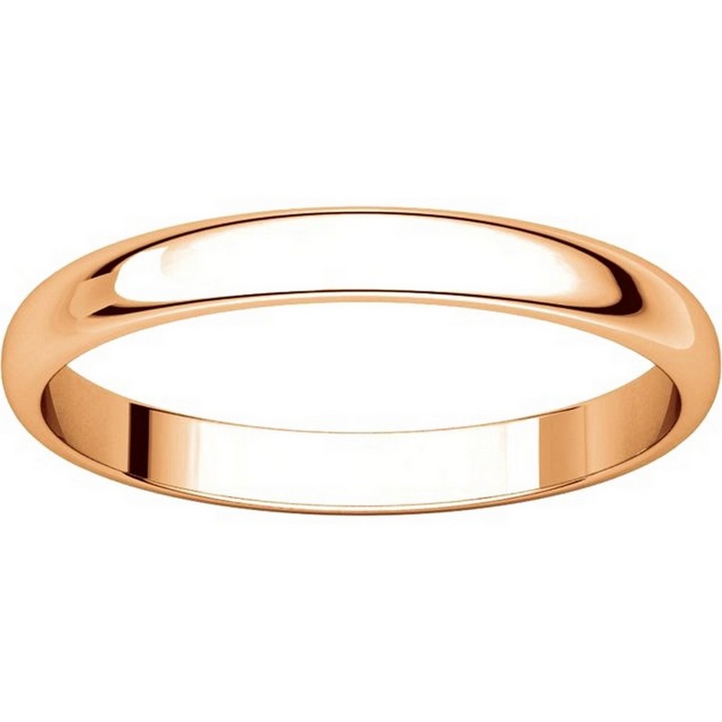 14 kt Rose Gold Plain 2.5 mm wide half round Wedding Band. The ring is completely polished. Different finishes may be selected or specified.