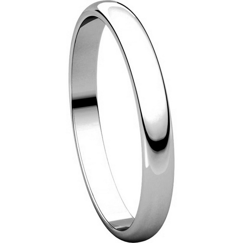 18 kt white gold Plain 2.5 mm wide half round Wedding Band. The ring is completely polished. Different finishes may be selected or specified.