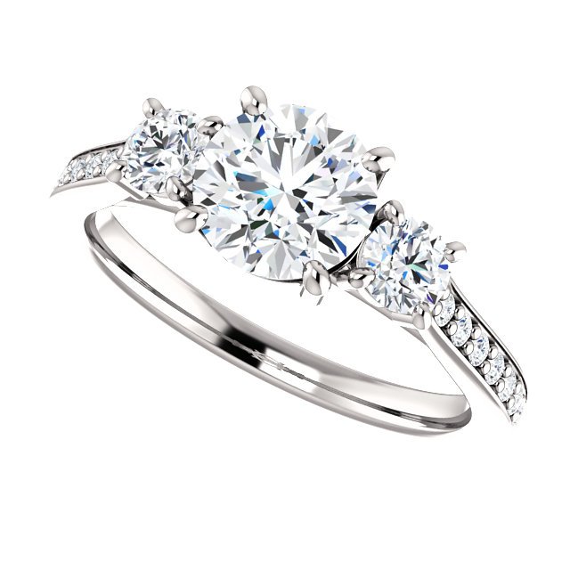 Diamond engagement ring 14K white gold. The ring holds 18 round brilliant cut diamonds with total weight of 0.50ct. and a center diamond that is ideal cut and weighs 0.75ct certified by GIA as SI2 inclarity I in color.