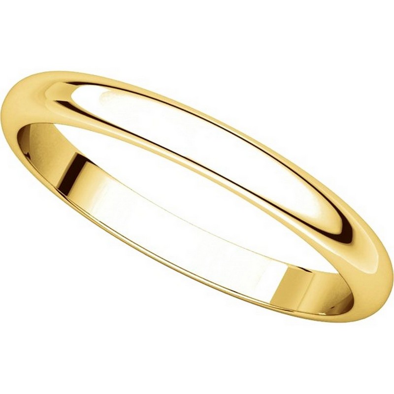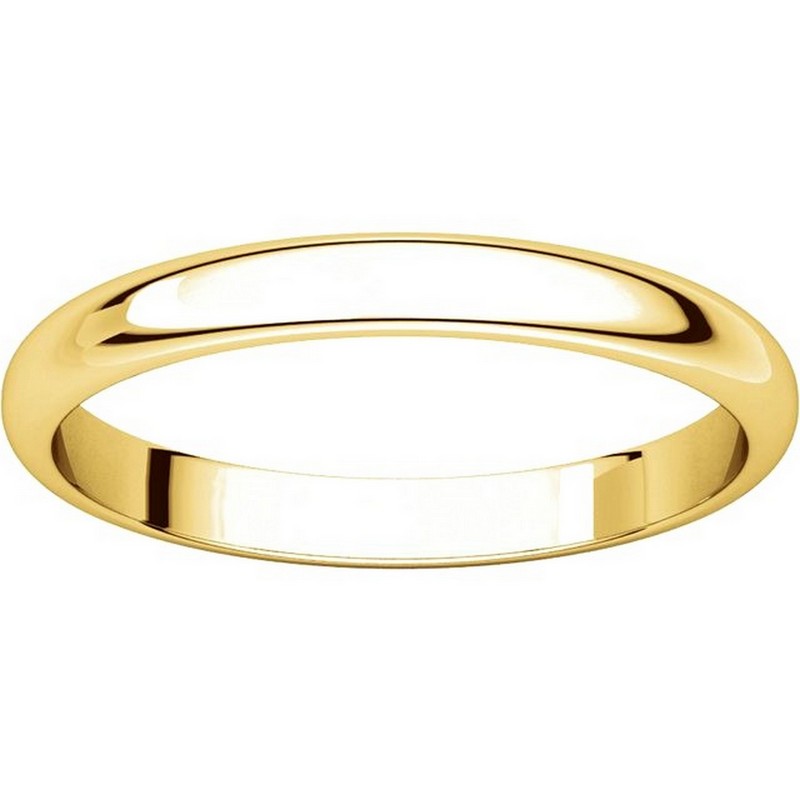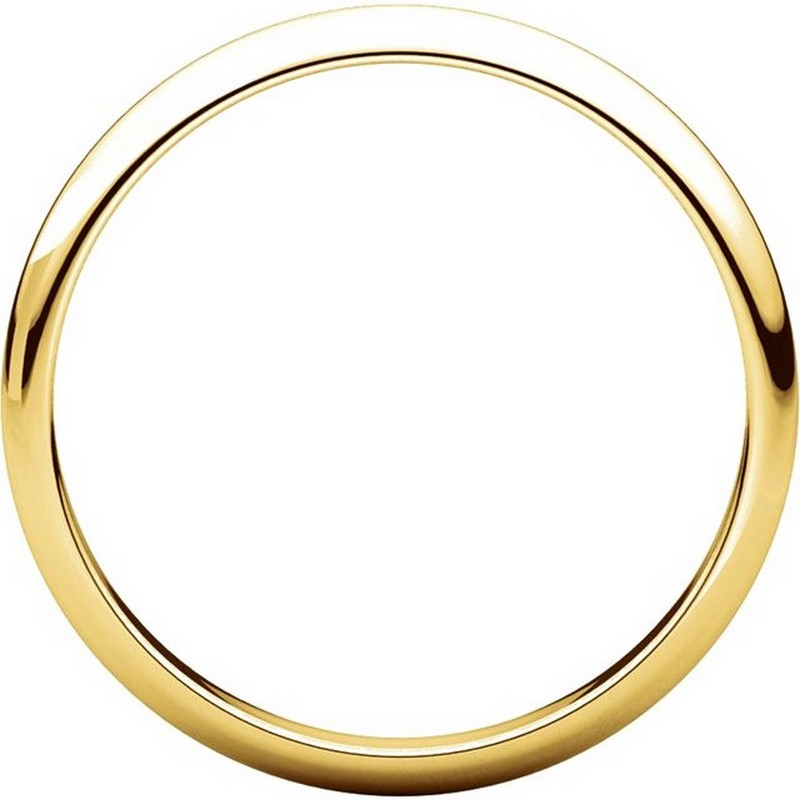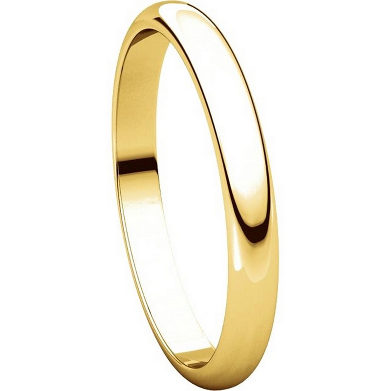 14 kt gold Plain 2.5 mm wide high dome half round Wedding Band. The ring is completely polished. Different finishes may be selected or specified.