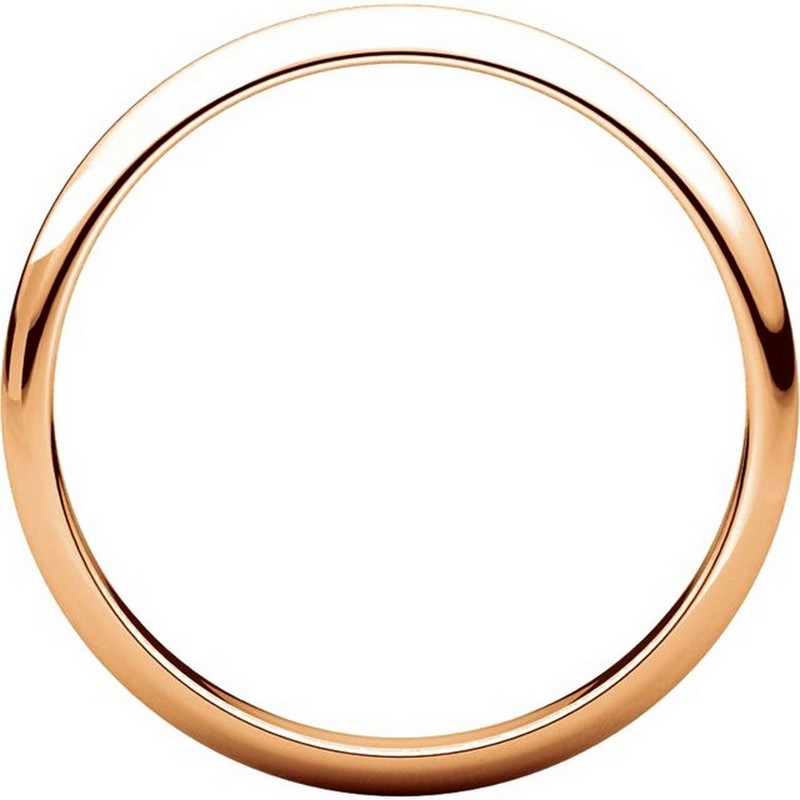 18 kt Rose  gold Plain 2.5 mm wide high dome half round Wedding Band. The ring is completely polished. Different finishes may be selected or specified.