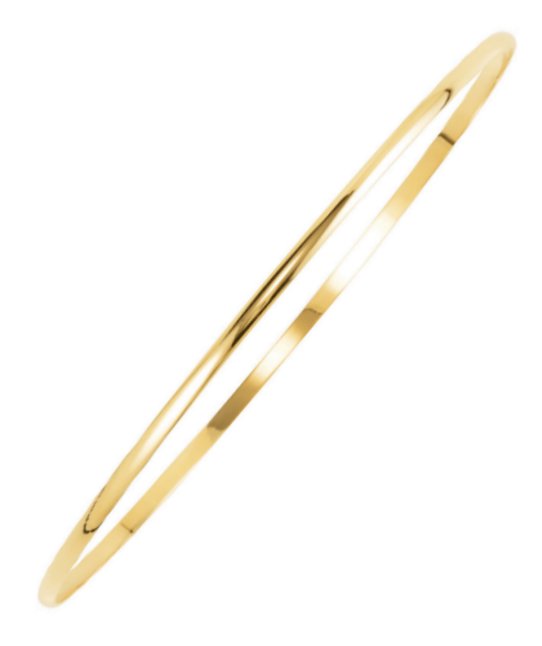 14K yellow gold, 2.0mm wide Slip-on Solid Bangle bracelet. The bracelet fits wrist sizes up to 7 inch.