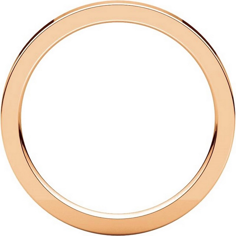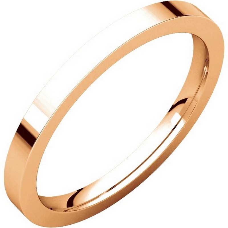 14 kt RoseGold plain 2.0 mm wide flat comfort fit wedding band. The ring is a polished finish. Different finishes may be selected or specified.