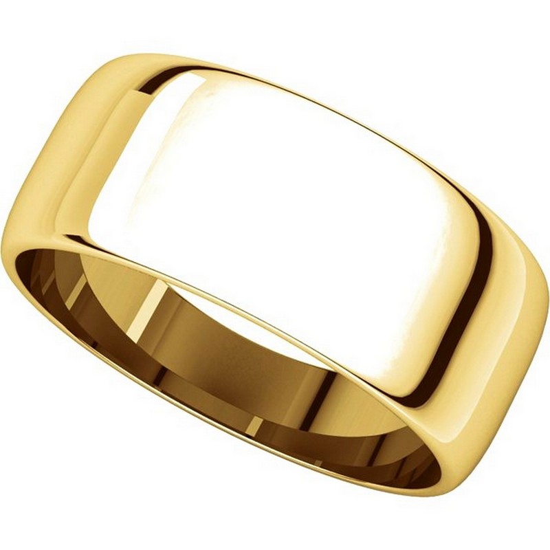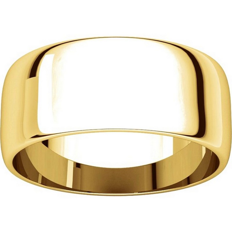 Yellow Gold 14K Plain 8.0 mm Wide Half Round Wedding Band. The whole ring is a polished finish. Different finishes may be selected or specified.
