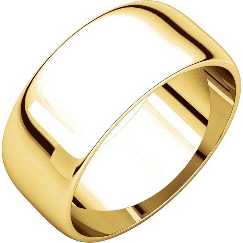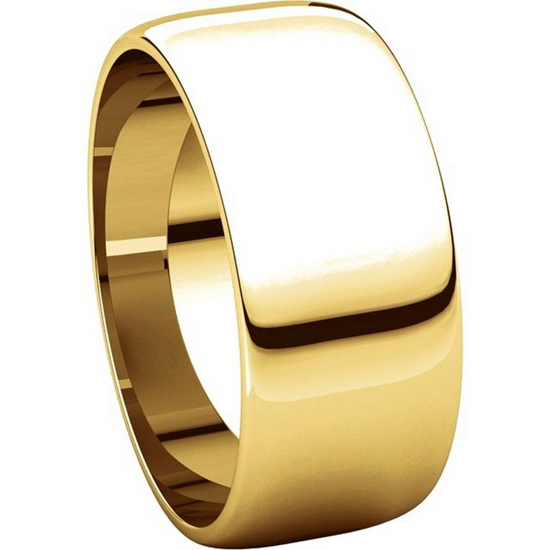 Yellow gold 18K plain 8.0mm wide half round wedding band. The ring has polished finish. Different finishes are available.