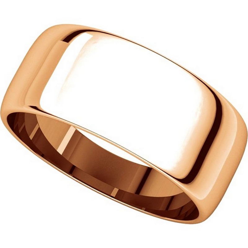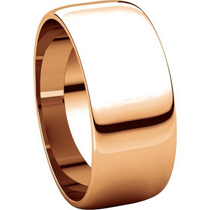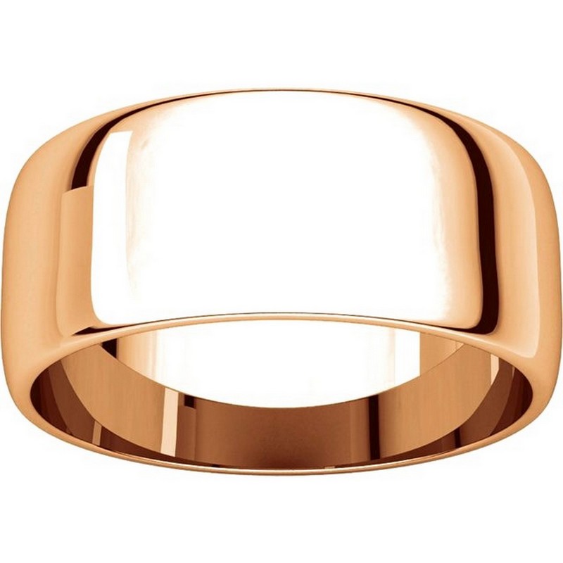Gold 18K Rose plain 8.0mm wide half round wedding band. The ring has  polished finish. Different finishes are available.