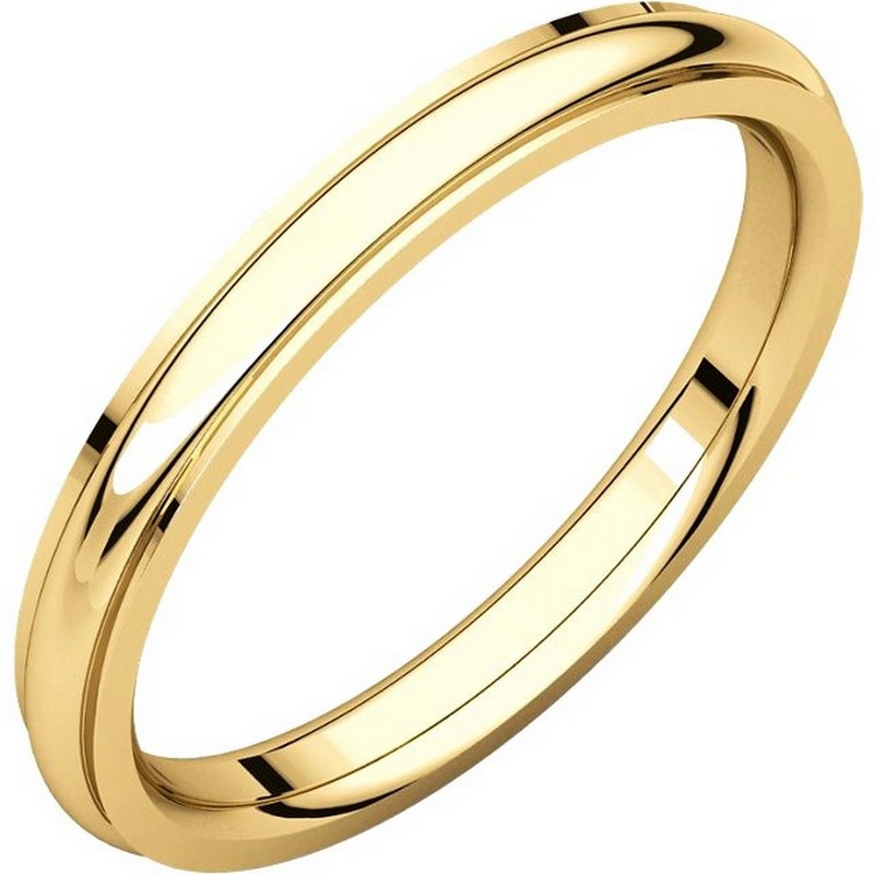 18K yellow gold comfort fit 2.5 mm wide wedding band with defined edge. The finish on the wedding ring is polished. Other finishes may be selected or specified.