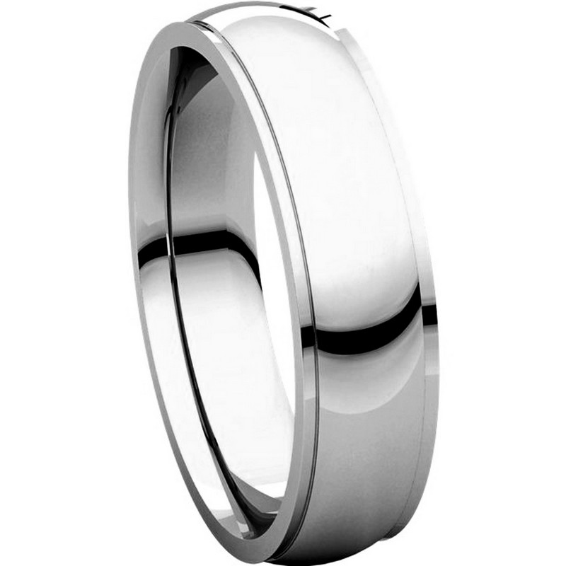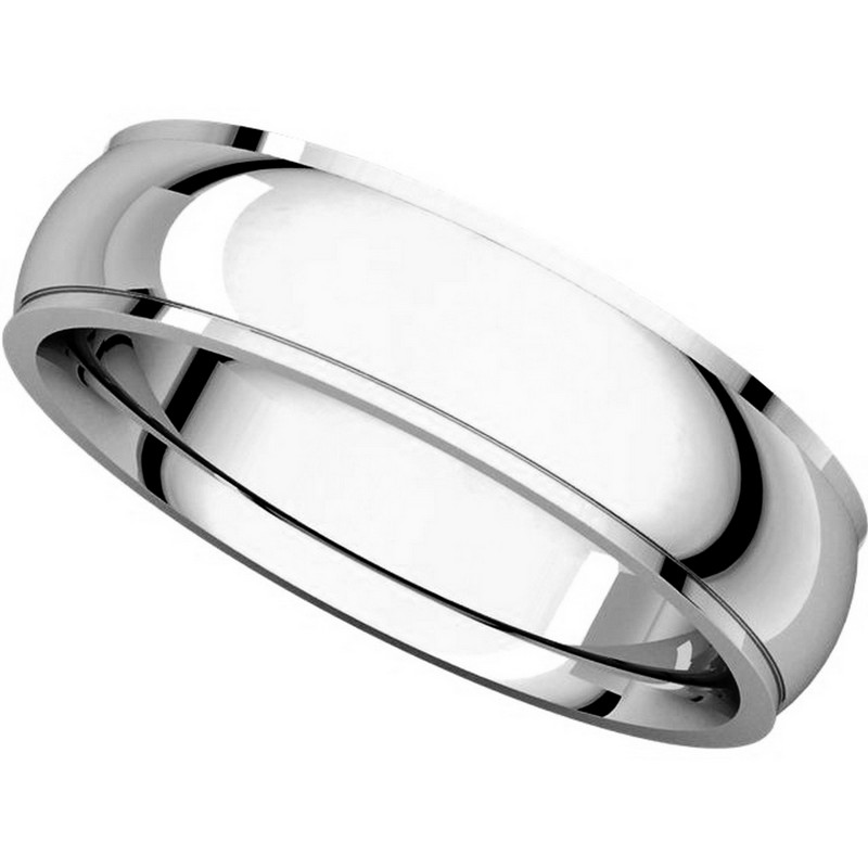 18K white gold comfort fit 5.0 mm wide wedding band with defined edge. The finish on the wedding ring is polished. Other finishes may be selected or specified.