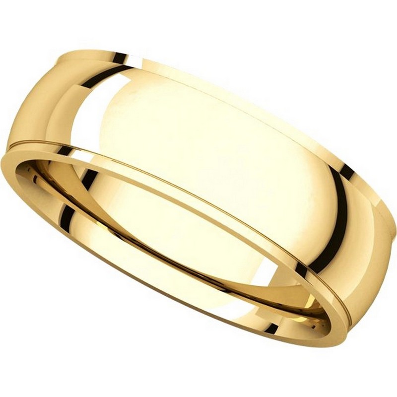 18K yellow gold comfort fit 6.0 mm wide wedding band with defined edge. The finish on the wedding ring is polished. Other finishes may be selected or specified.