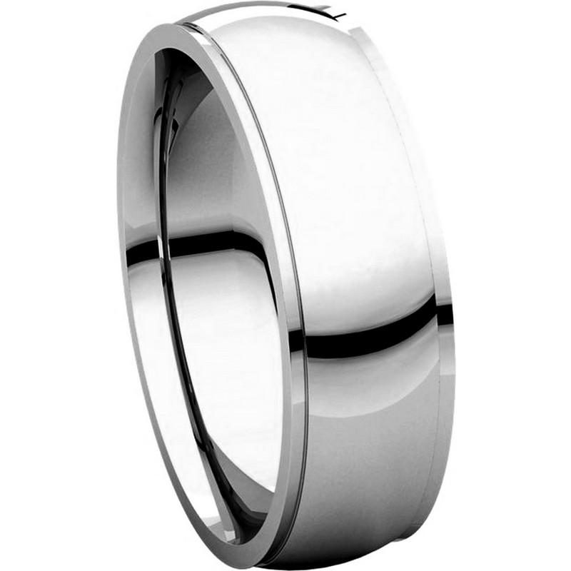 18K white gold comfort fit 8.0 mm wide wedding band with defined edge. The finish on the wedding ring is polished. Other finishes may be selected or specified.